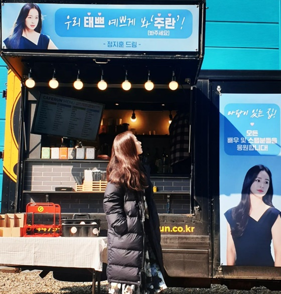 공개된 사진에는 김태희를 응원하는 커피차 사진이 담겼다. 비가 보낸 커피차에는 "우리 태쁘 예쁘게 봐주란! 정지훈 드림"이라는 문구가 적혀 있다.