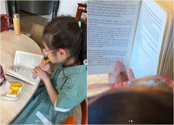 박지성♥김민지 딸, 9살인데 영어로 책 읽는 영재.."구여운 책벌레"