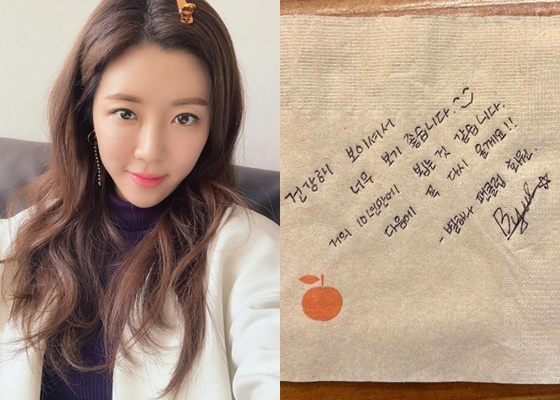 공개된 사진에는 박한별이 제주도에서 운영 중인 카페를 찾은 한 손님이 남긴 짧은 글이 담겼다. 이 손님은 휴지에 '건강해 보이셔서 너무 보기 좋습니다. 거의 10년 만에 뵙는 것 같습니다. 다음에 꼭 다시 올게요. 별하나 팬클럽 회원'이라고 적었다.