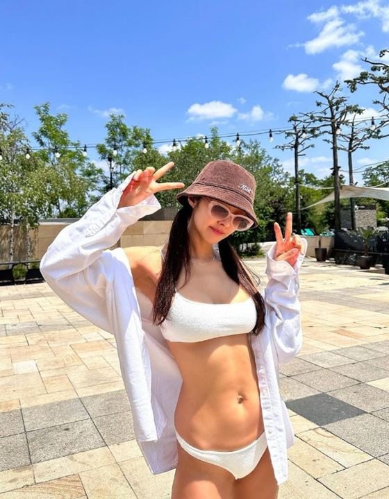 공개된 사진에는 하얀색 비키니를 착용한 김빈우의 모습이 담겼다. 그는 탄탄한 몸매를 자랑하고 있어 눈길을 끌었다.