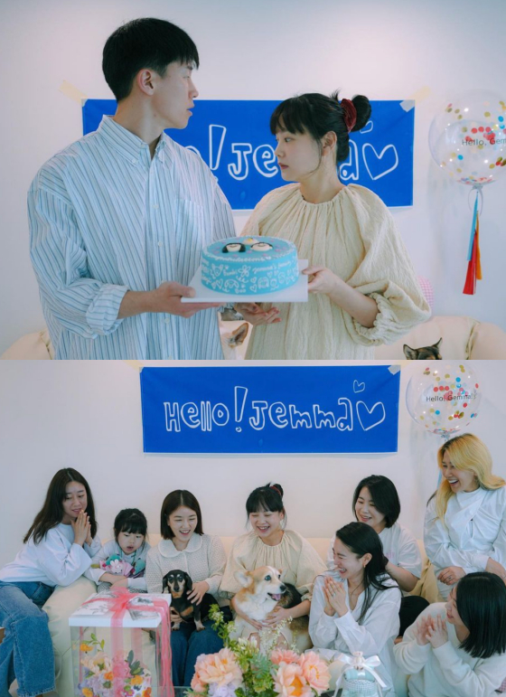 공개된 사진에는 지인들이 윤승아, 김무열 부부를 위해 준비해준 베이비 샤워 현장이 담겨 있다. 'Hello! Jemma'이 적힌 현수막 아래 환히 웃는 윤승아의 얼굴이 훈훈함을 자아냈다.