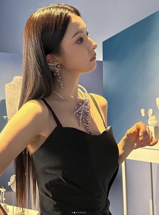 공개된 사진 속 신세경은 검은색 원피스에 화려한 액세서리를 하고 인형 미모를 뽐냈다.