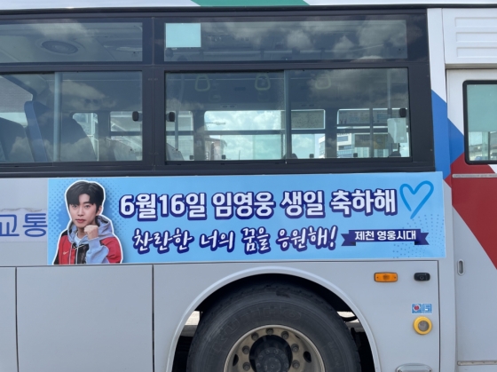 가수 임영웅의 데뷔 첫 리얼리티 '마이 리틀 히어로' 방송과 생일을 앞두고 팬들이 랩핑 버스로 응원한다.