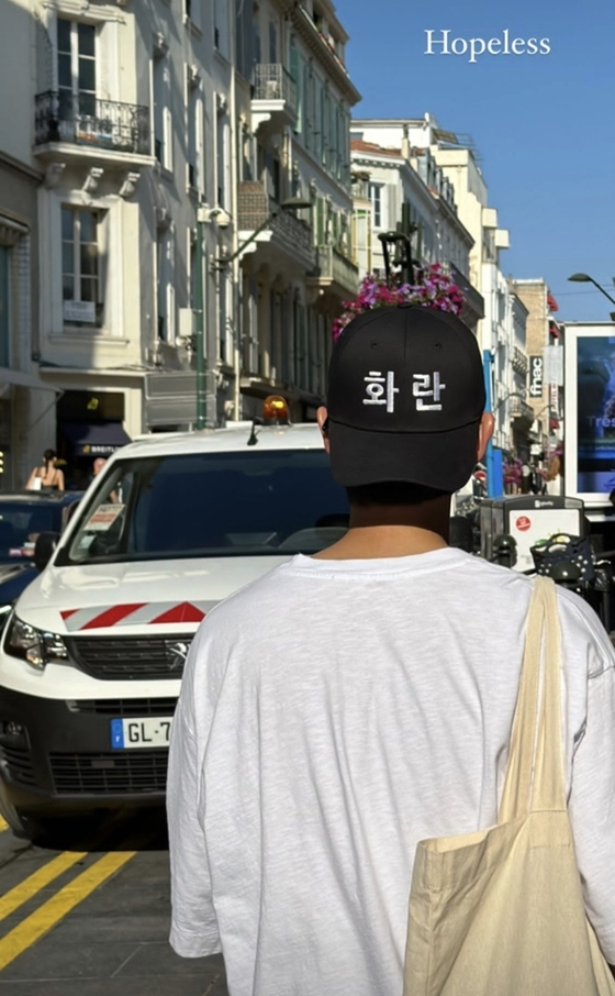 송중기, 칸에서 '화란' 셀프 거리 홍보를?