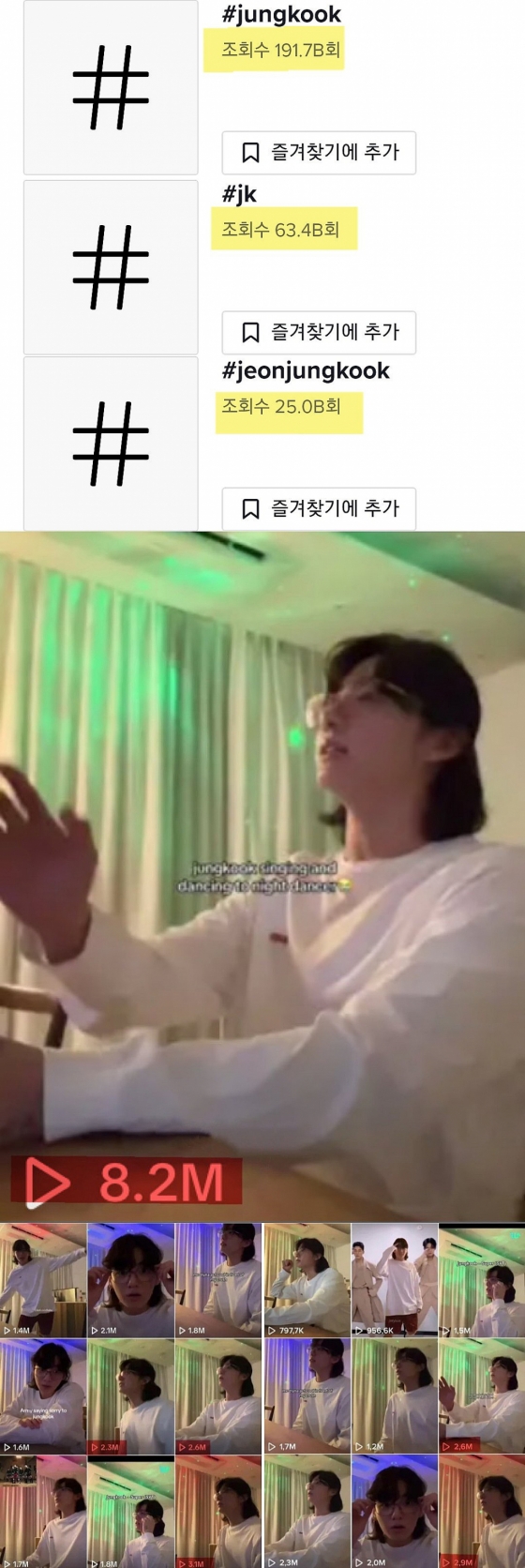 정국의 고유 명사 개인 해시태그 '#jungkook'은 틱톡에서 5월 30일 기준 조회수 1900억을 넘어섰다.