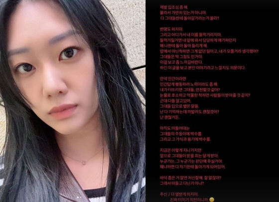 현쥬니는 또 "아직도 떠들어대는 그대들의 주둥이에 박수를. 지금은 이렇게 지나가지만 앞으로 그대들이 받을 죄는 달게 받아"라며 "바닥 좁은 거 알면 처신 잘 해"라고 경고했다.