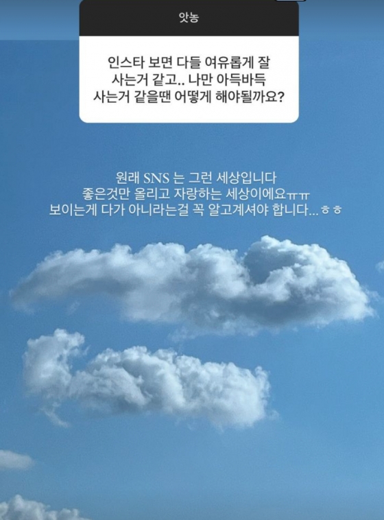이와 함께 유혜원은 한 팬이 "다들 여유롭게 잘 사는 것 같고 나만 아득바득 사는 것 같다"라는 고민에 "원래 SNS는 그런 세상입니다. 좋은 것만 올리고 자랑하는 세상이에요. 보이는 게 다가 아니라는 걸 꼭 알고 계셔야 합니다"라고 답하기도 했고 "좋아하는 사람만 생기면 자존감이 너무 내려간다"는 고민에는 "자존감 낮아지지 마세요. 이기적일 필요가 있습니다. 맞춰주지 마세요"라고 조언했다.
