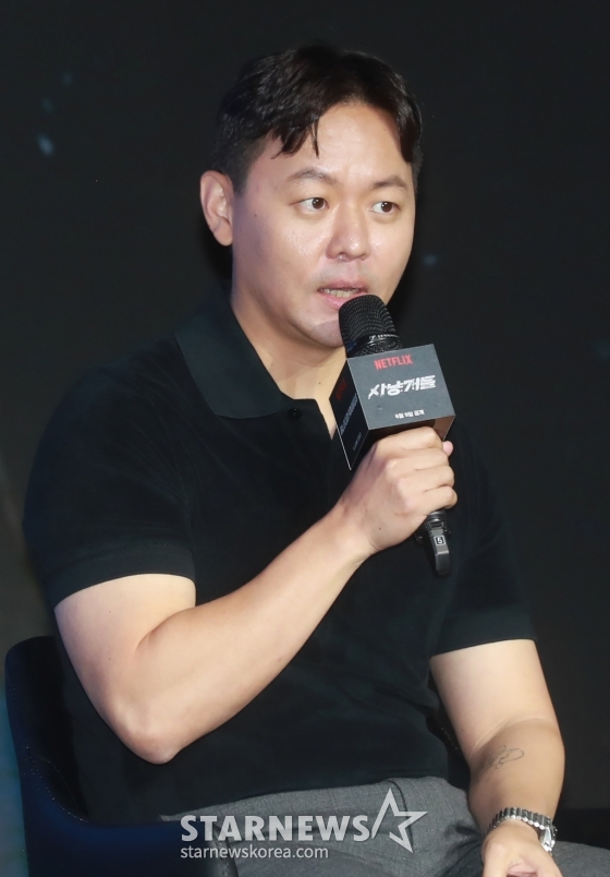 김주환 감독이 6일 오전 서울 마포구 호텔 나루에서 진행된 넷플릭스 시리즈 '사냥개들' 제작발표회에 참석해 질문에 답하고 있다.