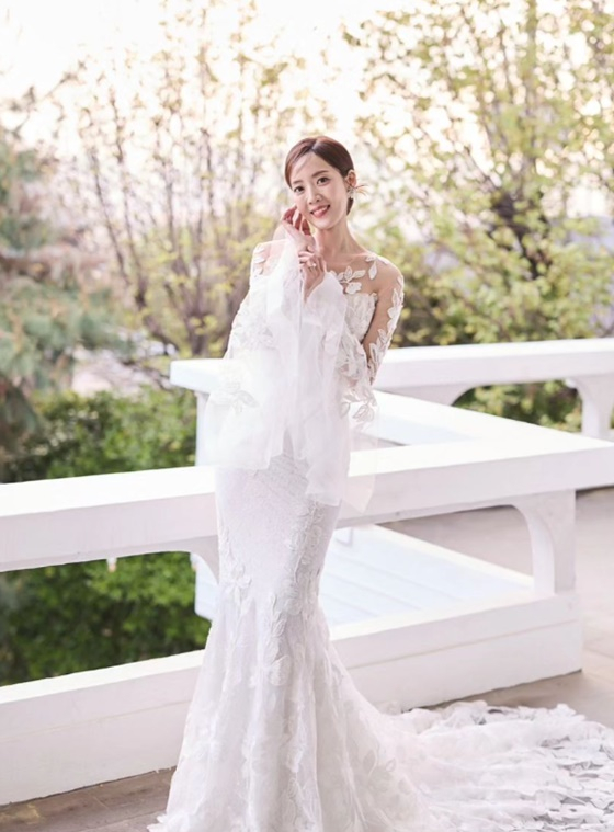 숲속의 여신 같은 웨딩 화보도 함께 올렸다. 이지연 아나운서는 웨딩드레스를 입고 청초한 비주얼을 뽐내고 있다.