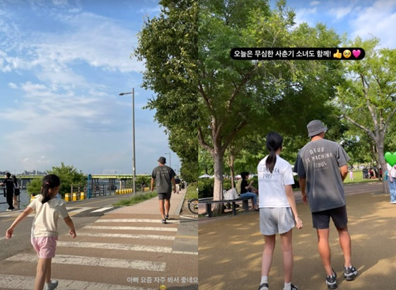 양은지는 7일 "아빠 요즘 자주 봐서 좋네요"라며 딸과 남편의 뒷모습을 공개했다.