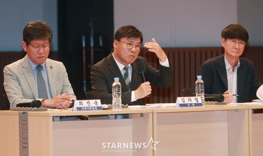 연예방송KBS, 수신료 분리징수 관련 입장 표명 기자회견[★포토]발행 : 2023.06.08 ・ 10:56이동훈 기자김의철 KBS 사장(가운데)이 8일 오전 서울 여의도 KBS 아트홀에서 진행된 수신료 분리 징수 권고 관련 기자회견에서 KBS의 반대 입장과 대응 방안을 밝힌 뒤 질문에 답하고 있다. /2023.06.08<저작권자 © 스타뉴스, 무단전재 및 재배포 금지>KBS수신료김의철사장추천 기사이동훈 기자기자홈좋아요 연예-방송의 인기 급상승 뉴스연예-방송의 최신 뉴스