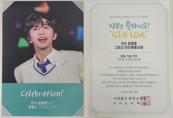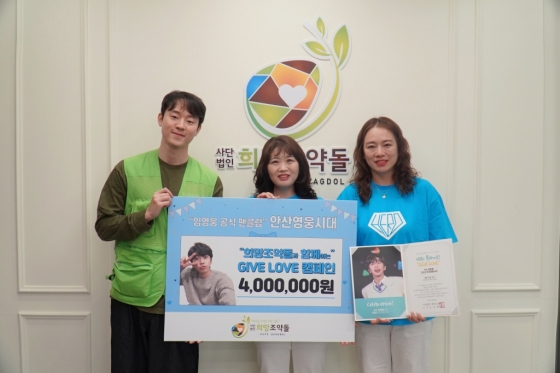 임영웅 팬클럽 안산 영웅시대는 임영웅의 생일(6월 16일)을 맞아 사단법인 희망조약돌에 400만원을 기부했다고 9일 밝혔다.