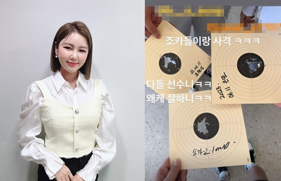 또 다른 사진에는 "다들 붙이길래 붙여놓고 옴"이라는 글과 함께 자신의 이름이 적힌 표적지를 벽에 붙여 놓은 모습이 담겼다. 노래, 예능 그리고 이번 사격까지 못하는게 없는 만능 스타의 면모를 엿 볼 수 있었다.