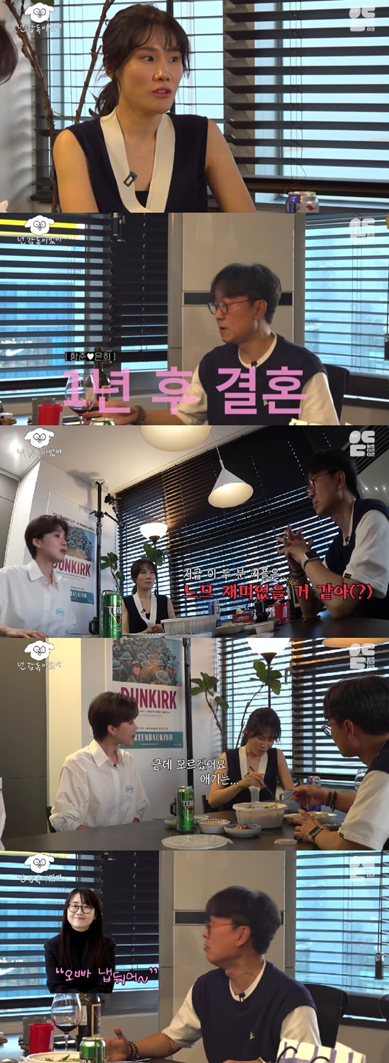 이를 들은 장항준 감독은 "나는 1년 연애하고 (결혼했다)"며 김은희 작가와의 러브스토리를 밝혔다. 그러면서 "연애 기간은 계절의 텀이 한 번 정도 도는 게 좋을 거 같다. 그다음에 결혼하면 재밌는 게 많을 거 같다"고 했다.