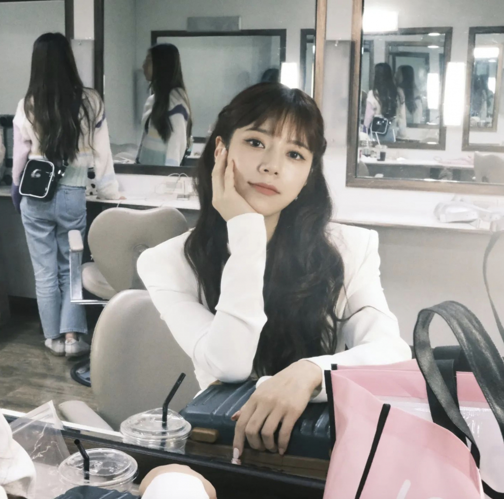 공개된 사진 속 양지은은 대기실에서 꽃받침 포즈를 하고 사진을 찍었다. 양지은은 여신 비주얼로 시선을 모았다.
