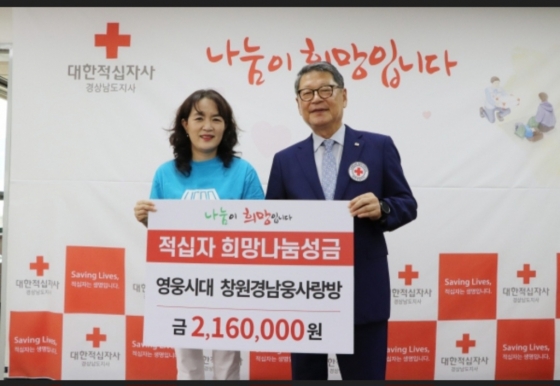임영웅 팬클럽 영웅시대 창원경남웅사랑방은 6월 12일 대한적십자사 경남지사(회장 김종길)에 긴급지원 희망나눔 성금 216만 원을 전달했다.