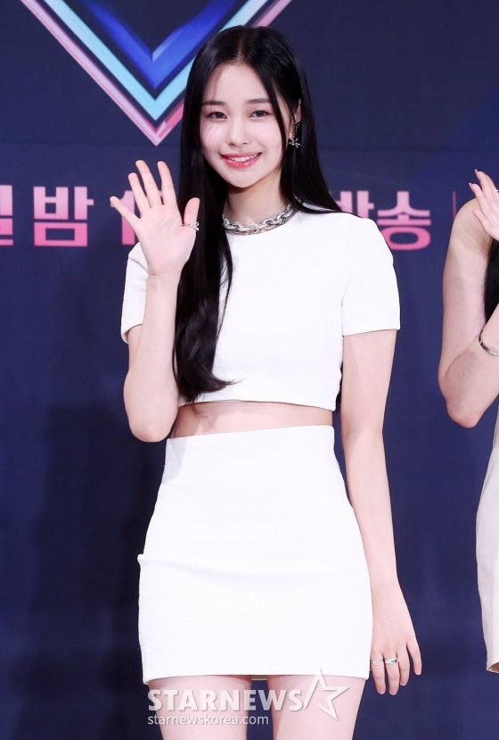 위클리 지한이 13일 오후 서울 종로구 부암동 AW컨벤션에서 진행된 엠넷 '퀸덤퍼즐' 제작발표회에 참석해 포즈를 취하고 있다.