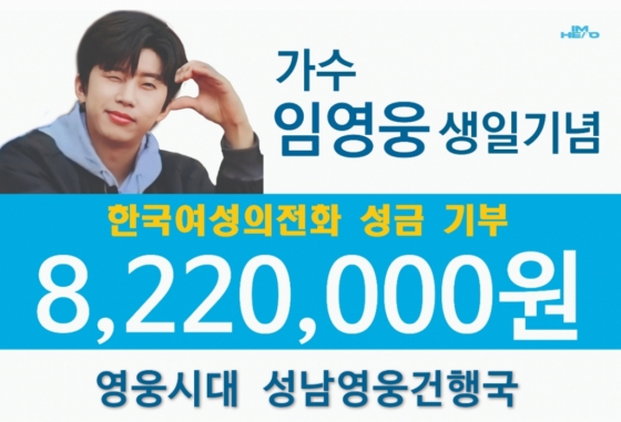 임영웅 팬클럽 성남영웅건행국은 임영웅의 생일(6월 16일)을 맞아 6월 14일 (사)한국여성의전화에 822만 원의 성금을 전달했다.