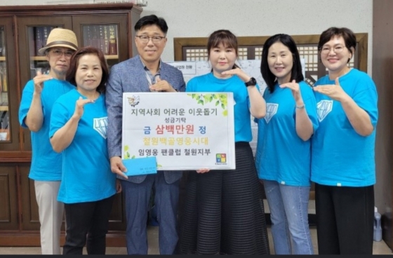 임영웅 팬클럽 '철원백골 영웅시대'는 최근 강원도 철원군 동송읍사무소를 방문해 불우이웃돕기 성금 300만 원을 기탁했다.