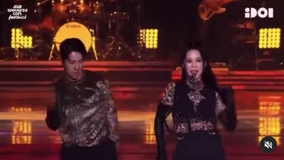 엄정화는 17일 자신이 무대에 섰던 위버스콘 2023 무대 영상을 공개했다.