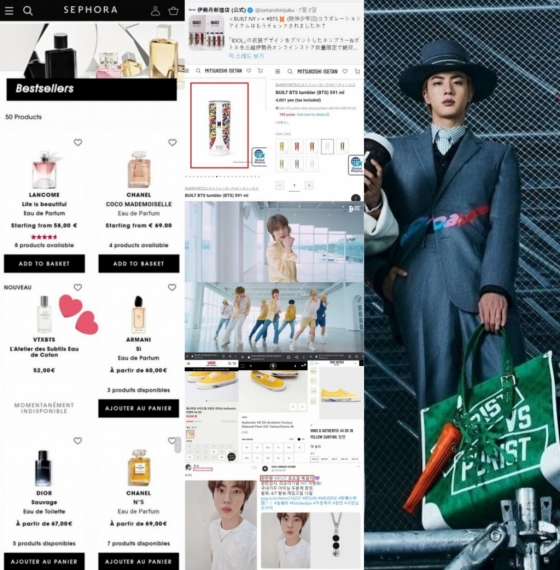 방탄소년단이 브이티 코스메틱(VT COSMETICS)과 컬래버레이션 한 'VT 향수' 중 진의 향수가 유일하게 전 세계에서 가장 유명한 화장품 전문 매장 세포라(Sephora) 온라인 사이트에서 베스트셀러 제품이 됐으며 일본 미츠코시 이세탄 온라인 스토어에 '