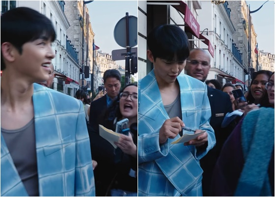 최근 득남한 송중기가 프랑스 파리에서 '본업'을 시작했다.
