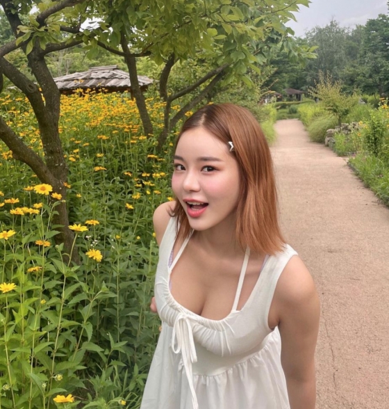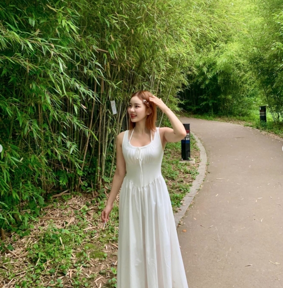 사진에서 뱅승지는 자신의 볼륨감이 강조된 롱 드레스로 시선을 사로잡고 있다.
