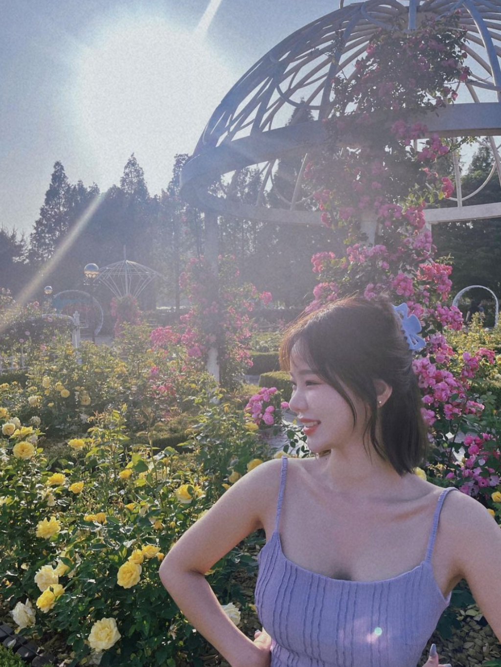 맹승지는 27일 꽃들이 예쁘게 피어있는 곳들을 배경으로 근황 컷을 공개했다.