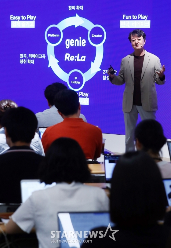 '지니리라(genie.Re:La)는 평소 작곡o편 곡에 관심 있던 소비자들의 진입 장벽을 시로 낮춰 줌으로써 창작의 재미를 선사 하는 서비스라는 점에서 주목된다. 2023.06.28
