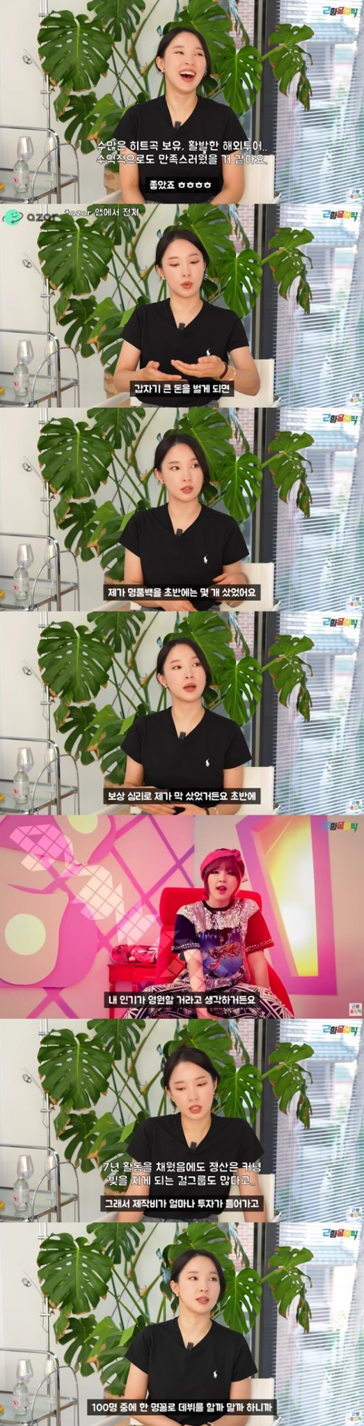 이날 공개된 영상에서 전지윤은 "포미닛의 경우 '핫이슈가' 가장 잘 됐다. 데뷔 첫 해에 바로 손익분기점을 넘기고 정산이 됐다"고 운을 뗐다.