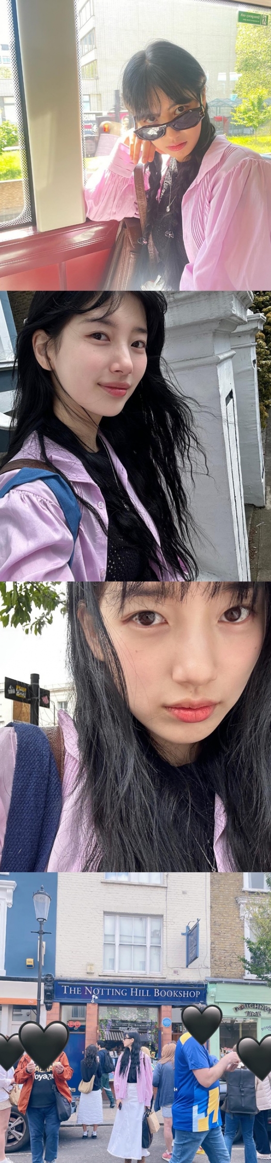 가수 겸 배우 수지가 런던에서 청순한 외모를 과시했다.
