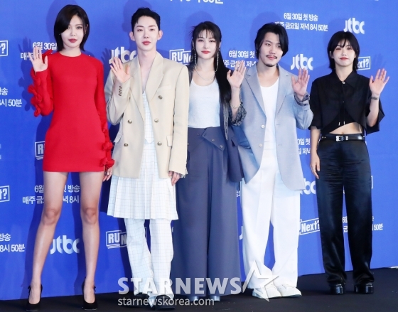 가수 최수영, 조권, 박규리, 미드낫, 댄서 아이키가 30일 오전 서울 마포구 상암동 스탠포드 서울에서 진행된 JTBC 서바이벌 예능 'R U Next?' 제작발표회에 참석해 인사말을 하고 있다.