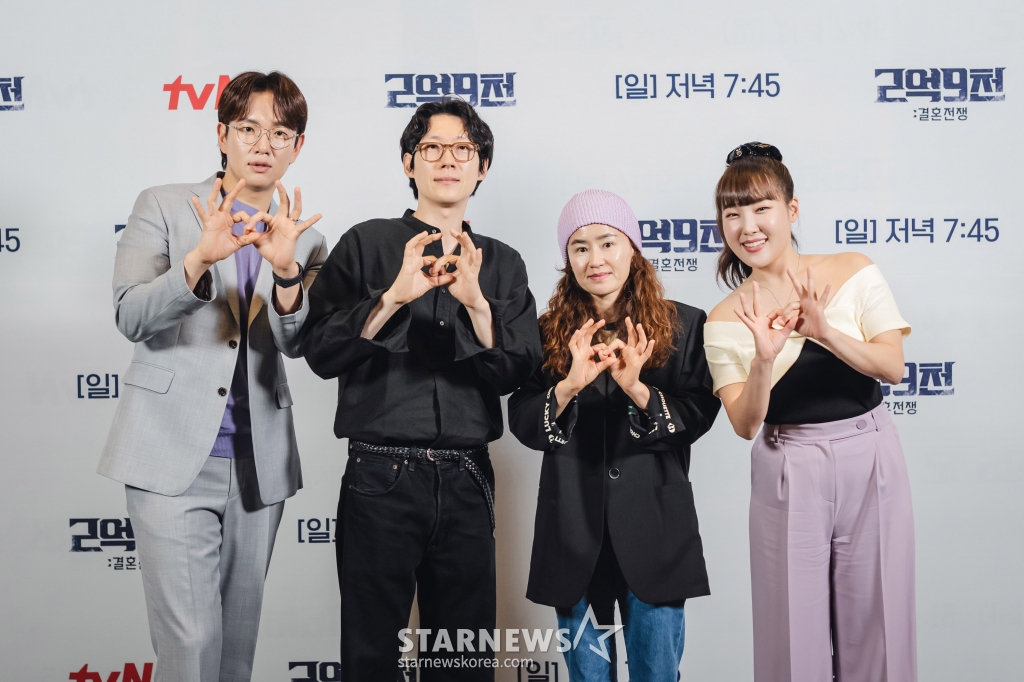 방송인 장성규, 이원웅 PD, 강숙경 작가, 코미디언 이은지가 30일 오후 온라인으로 진행된 tvN 예능 프로그램 '2억9천 : 결혼전쟁' 제작발표회에 참석해 포즈를 취하고 있다.