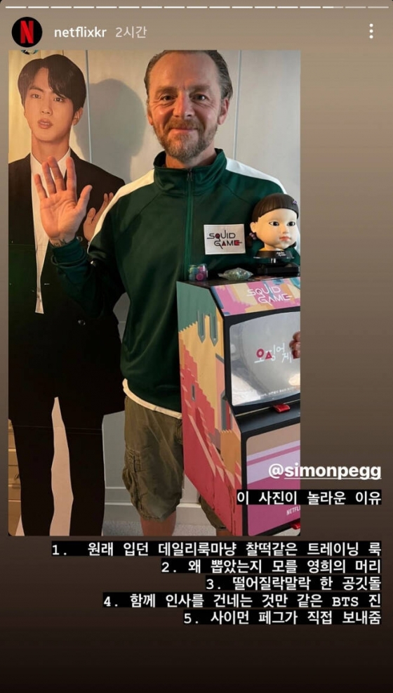 방탄소년단(BTS) 진을 향해 세계적인 배우 사이먼 페그(Simon Pegg)가 또다시 '최애' 고백을 해 눈길을 끈다.
