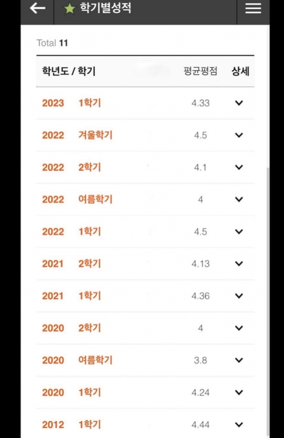 구혜선은 3일 자신의 성균관대학교 영상학과 성적표를 공개했다.