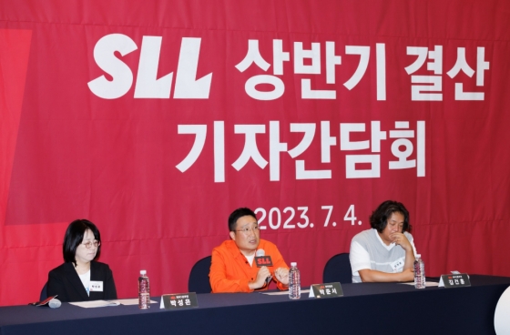4일 오전 서울 중구 광화문 한국프레스센터 프레스클럽에서 SLL 2023년 상반기 결산 기자간담회가 열렸다. SLL 박준서 제작총괄, 박성은 제작1본부장, 김건홍 제작2본부장이 참석했다.