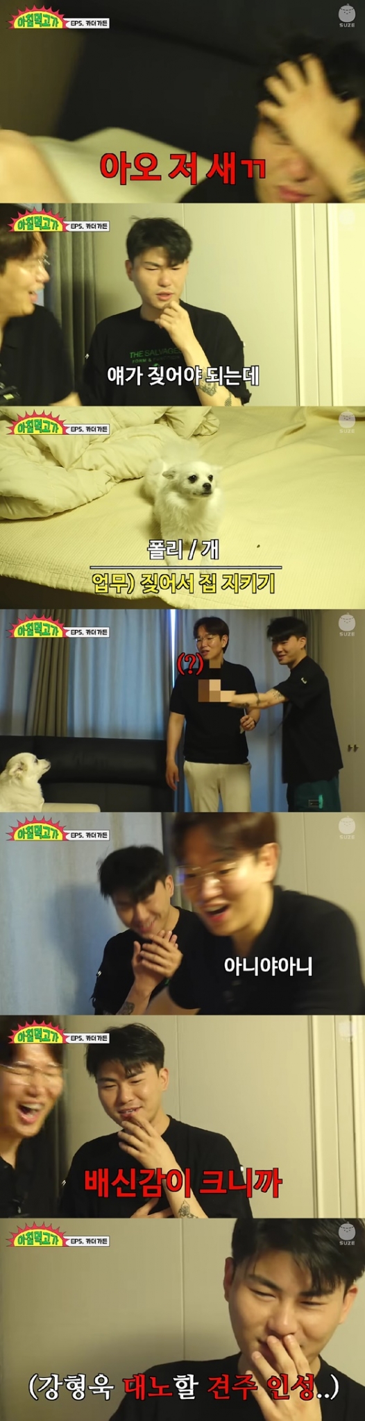 장성규는 아무것도 모른 채 깊이 잠든 카더가든의 팔에 간식을 묻혀 폴리가 핥게 했다. 이에 카더가든은 잠결에 폴리를 저지하면서도 뭔가 이상한 낌새를 느끼고 이내 잠에서 깼다.