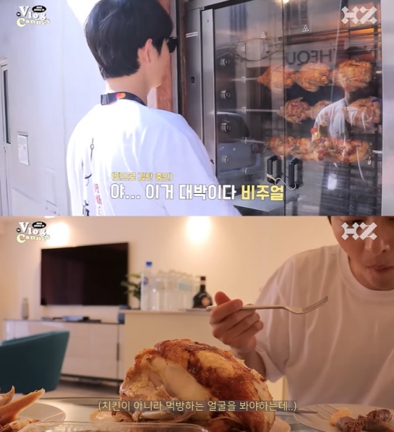 숙소에 돌아온 송중기는 정신없이 치킨을 흡입하는 '먹방'을 선보여 친근함을 자아냈다.