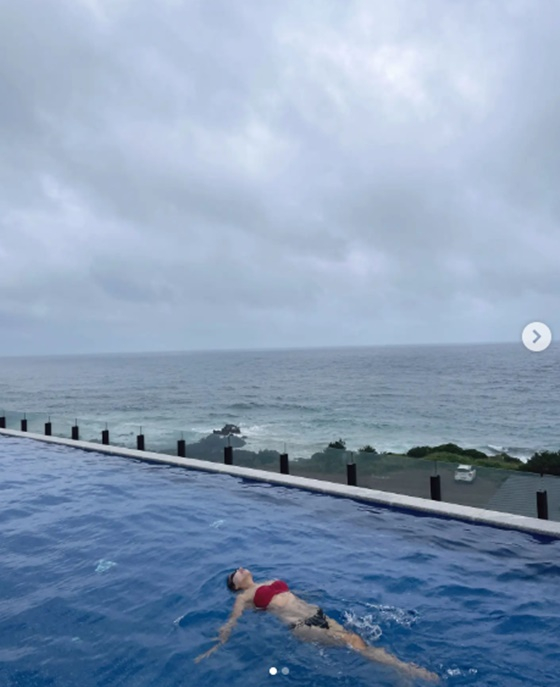 황정음은 11일 수영장에서 수영중인 사진을 게재했다. 황정음은 프라이빗 펜트하우스의 수영장에서 휴가를 즐기고 있다고 알렸다.