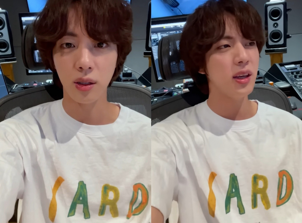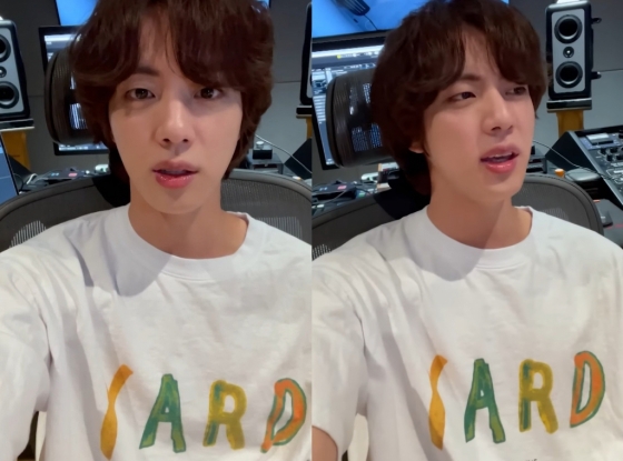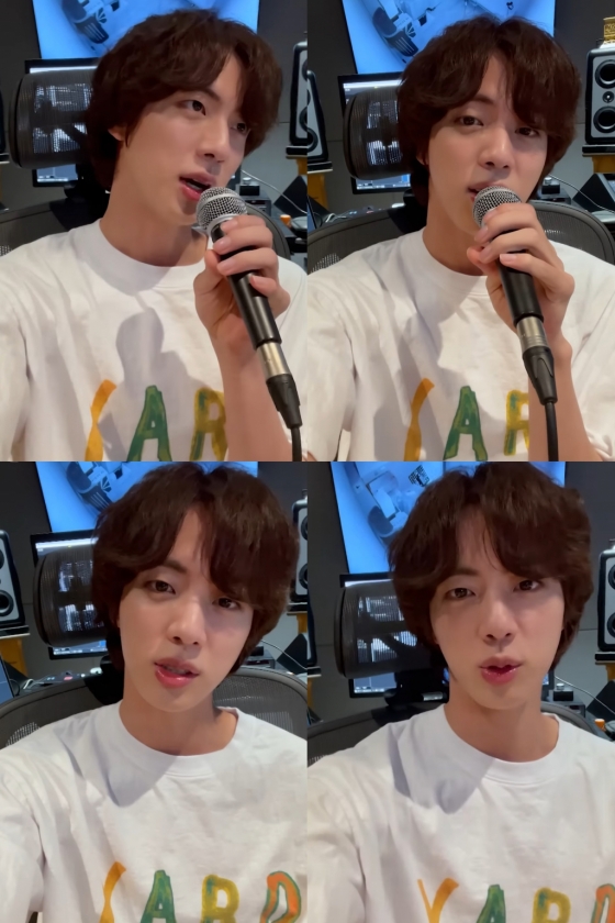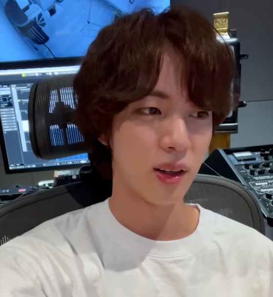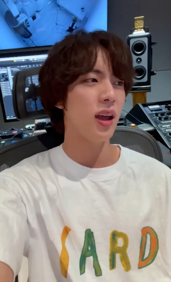 'n월의 석진' 영상에서 진은 웨이브 진 갈색 펌 헤어스타일로 장미 같은 화사한 얼굴로 미소 지으며 "여러분 안녕하세요. 진입니다"라고 인사한 다음 'The Astronaut'(디 애스트로넛) 무대 준비를 위해 라이브 연습을 하고 있다고 전했다.