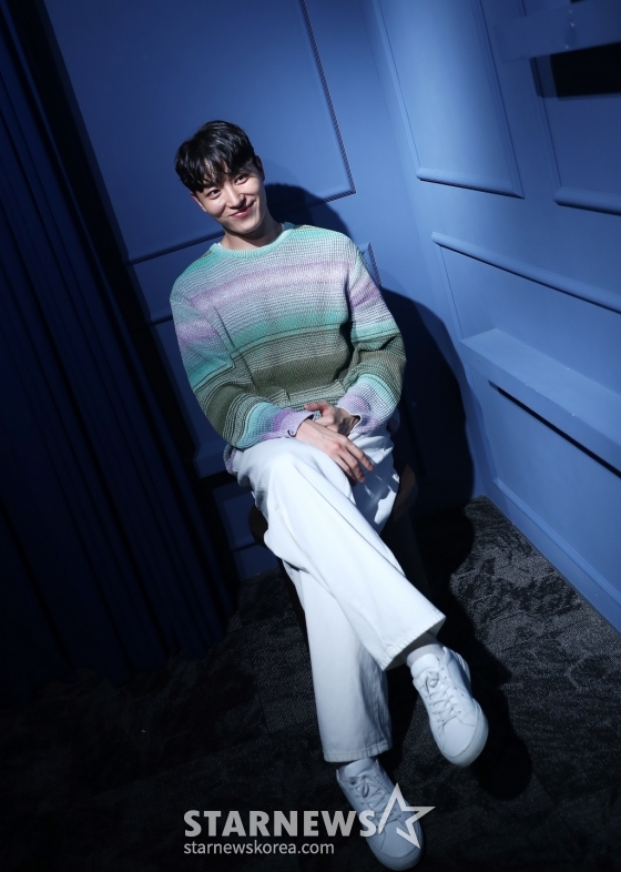 배우 윤도진이 서울 종로구 스타뉴스에서 진행된 웹드라마 '트랙터는 사랑을 싣고'(이하 트사고) 관련 인터뷰에 앞서 포즈를 취하고 있다.