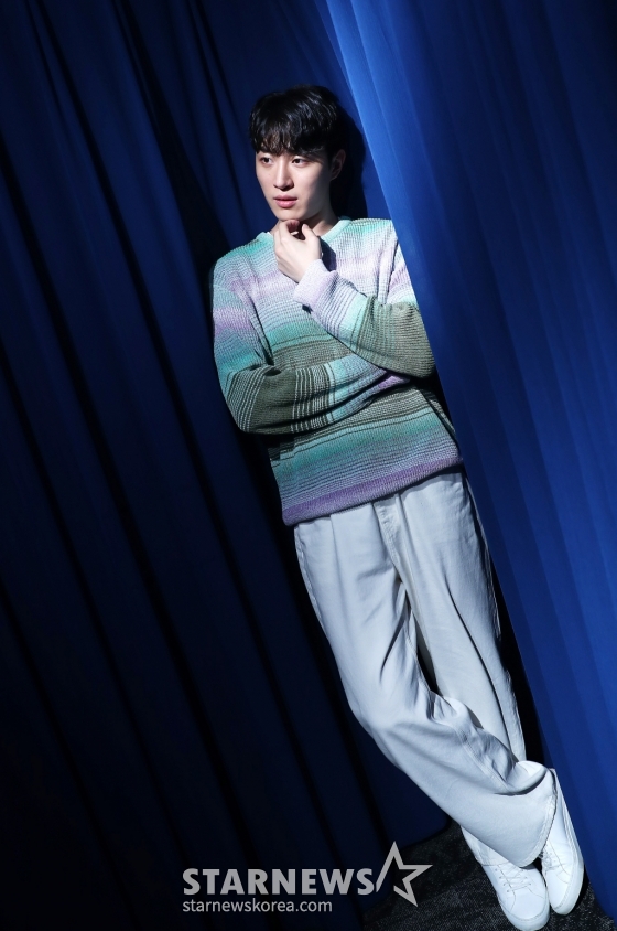 배우 윤도진이 서울 종로구 스타뉴스에서 진행된 웹드라마 '트랙터는 사랑을 싣고'(이하 트사고) 관련 인터뷰에 앞서 포즈를 취하고 있다.