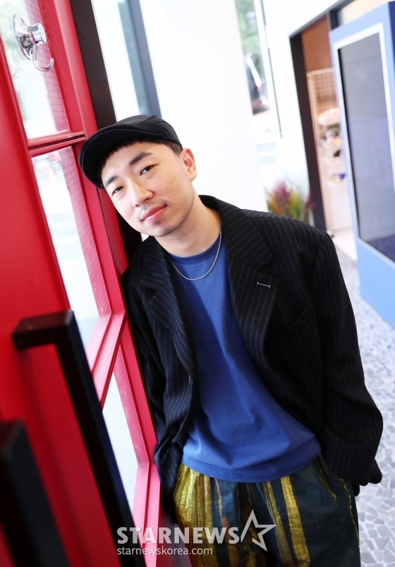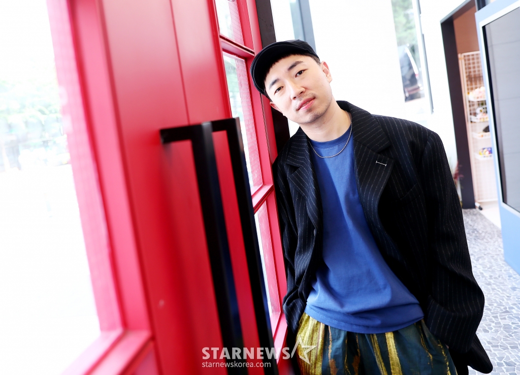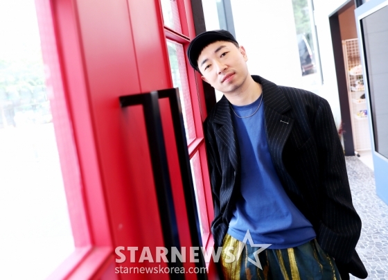 프로듀서 정키가 수안과 함께 진행된 스타뉴스와 인터뷰에 앞서 포즈를 취하고 있다.