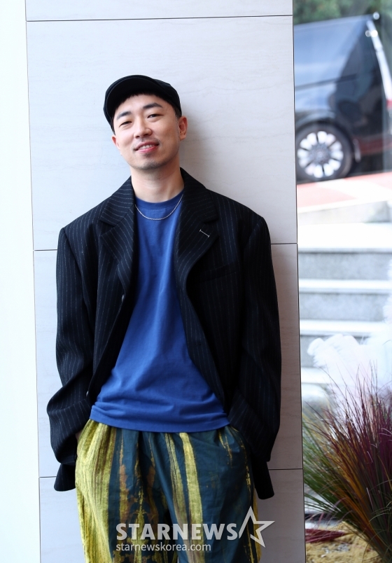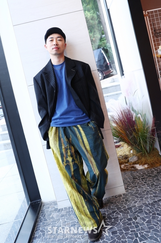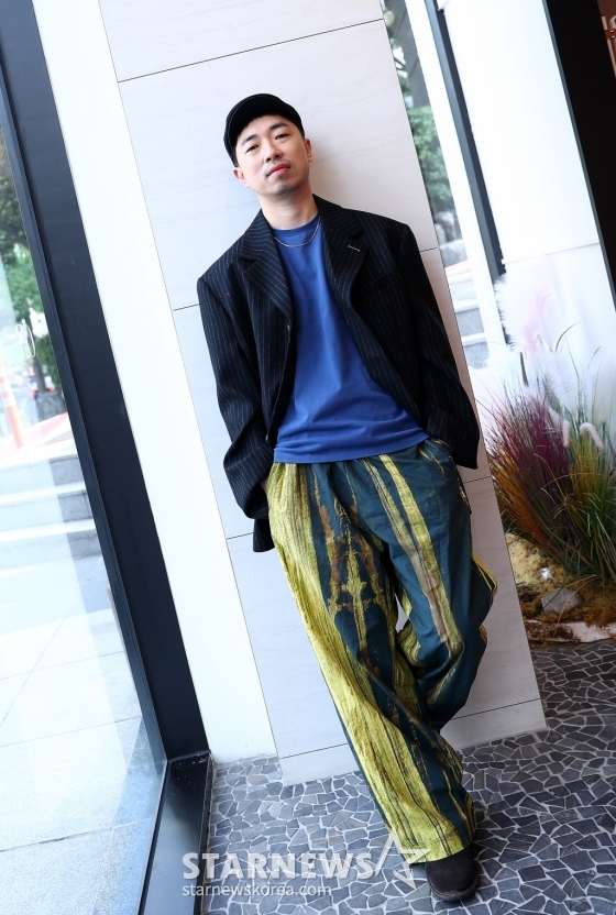 프로듀서 정키가 수안과 함께 진행된 스타뉴스와 인터뷰에 앞서 포즈를 취하고 있다.