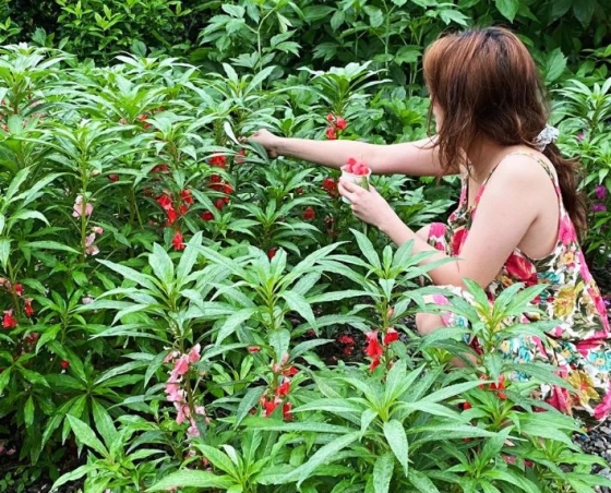 공개된 사진에는 봉숭아 꽃잎을 따는 고은아의 옆모습이 담겨 있다.
