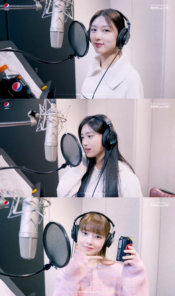 펩시와 스타쉽엔터테인먼트(이하 스타쉽)는 17일 공식 채널을 통해 '2023 펩시 캠페인' 주인공 아이브의 신곡 '아이 원트(I WANT)' 녹음실 메이킹 필름을 게시했다.