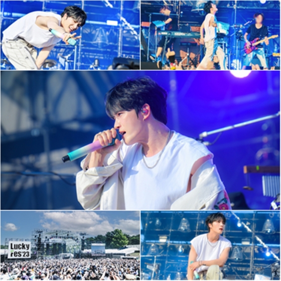 김재중은 일본 구영 히타치 해변 공원에서 지난 15일부터 3일 간 개최된 야외 음악 축제인 '럭키 페스티벌' 무대에 올랐다.