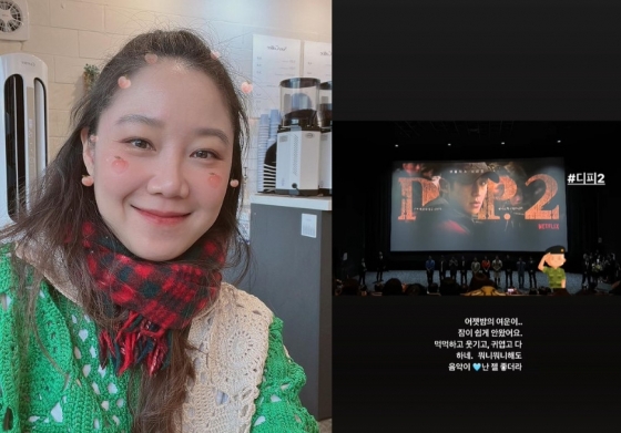 공개된 사진 속엔 넷플릭스 오리지널 '디피2' 시사회 현장이다. 케빈오는 앞서 '디피1' OST에 참여한 바 있다. 공효진은 배우 동료의 음악과 더불어 남편의 음악을 응원했다.