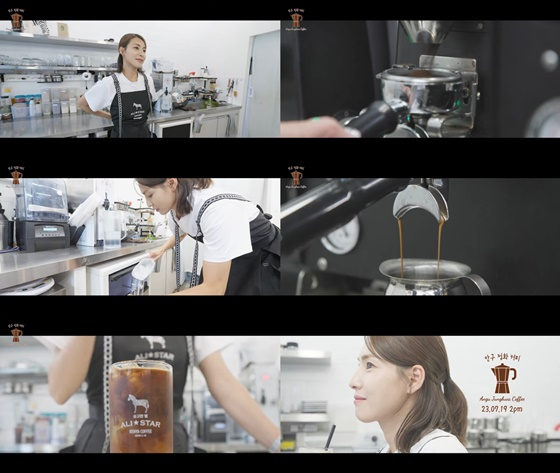 공개된 영상에서는 은은한 피아노 소리와 함께 김정화가 직접 커피를 제조하는 모습이 담겼다.