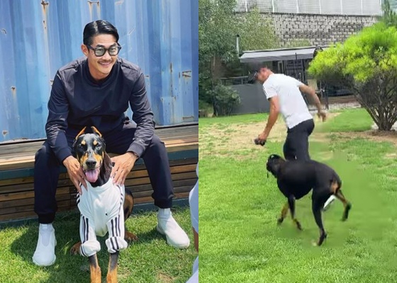 공개된 사진에는 배정남이 반려견 벨과 함께 신나게 달리는 모습이 담겨 있다.